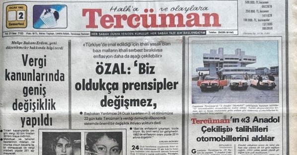 2 Ocak 1982 tarihli Tercüman yayını; askerî yönetim altındaki Türkiye’nin yeni yıla ekonomik disiplin ve istikrar söylemiyle girişini yansıtıyordu. Özal’ın kararlılık mesajları, vergi düzenlemeleri ve piyango haberleri, siyasal sessizlikle iç içe bir gündelik hayat tablosu çiziyordu.