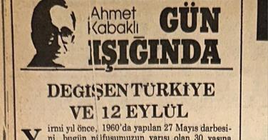 Ahmet Kabaklı 20 Eylül 1980’de Tercüman’da yayımlanan yazısında, milletin rızasının her devrimin ve hareketin tek meşruiyet kaynağı olduğunu vurguluyor. 12 Eylül’ün hemen ardından yazdığı bu yazısında 27 Mayıs 1960’ı da anan Kabaklı, gerçek tarihin ancak milletin vicdanında yazıldığını ifade ediyor.