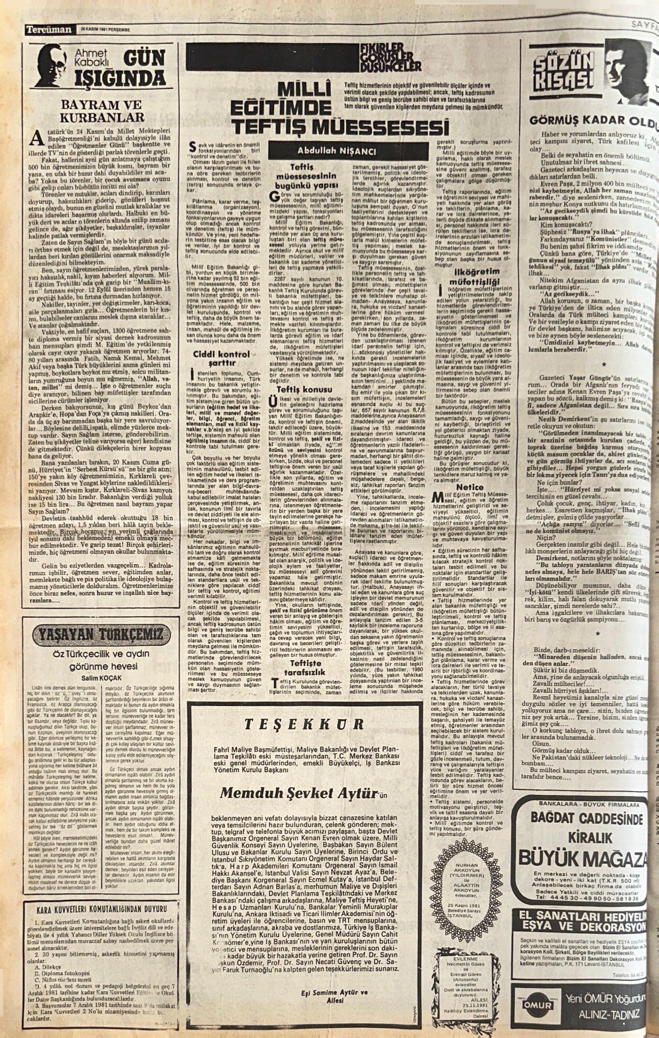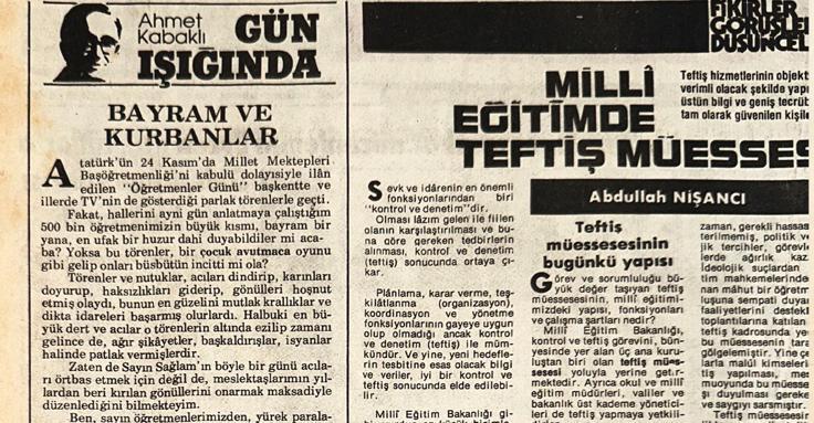 Ahmet Kabaklı 26 Kasım 1981 tarihinde Tercüman’daki köşe yazısında Öğretmenler Günü vesilesiyle eğitim politikalarına ve öğretmenlerin yaşadıkları mevcut durumlara değiniyordu.