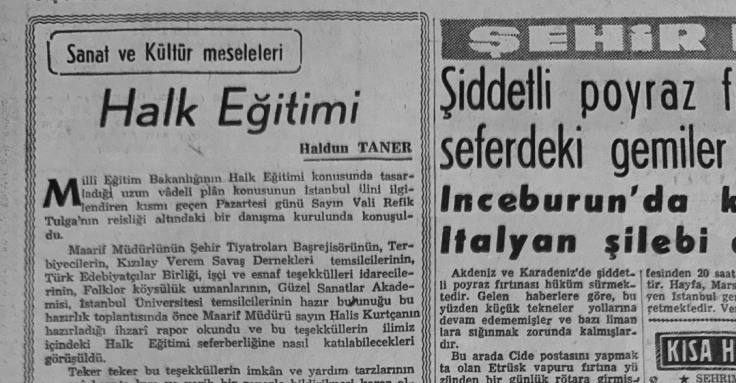 Haldun Taner 9 Şubat 1961’de Tercüman’daki köşe yazısında, Millî Eğitim Bakanlığı’nın halk eğitimi için hazırladığı uzun vadeli planı değerlendirmiş; okuma yazma seferberliğinden gece kurslarına, tiyatrodan filme uzanan bu çabanın pratik biçimde hayata geçirilmesi gerektiğini vurgulamıştı.