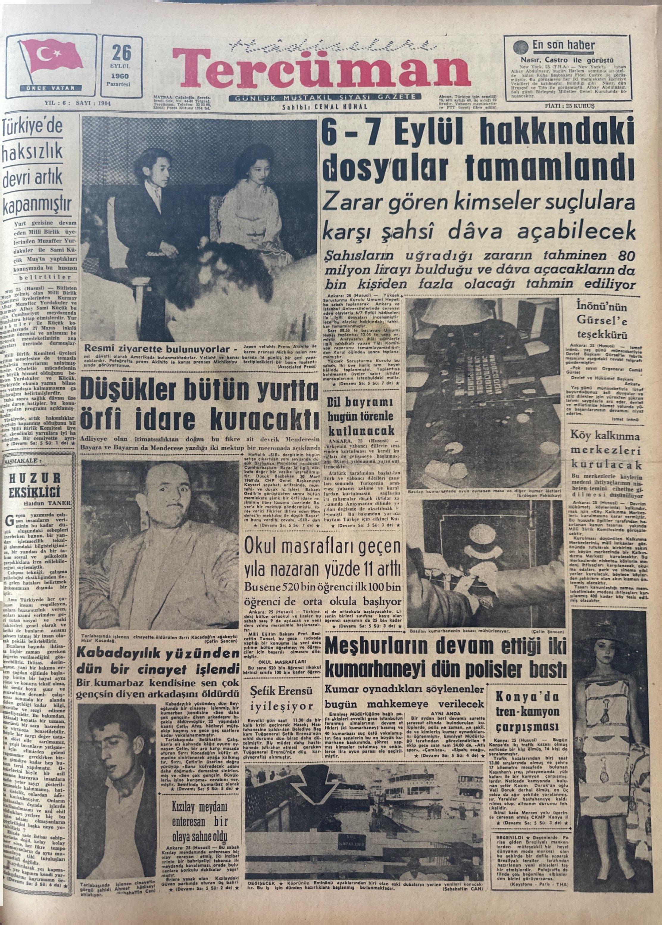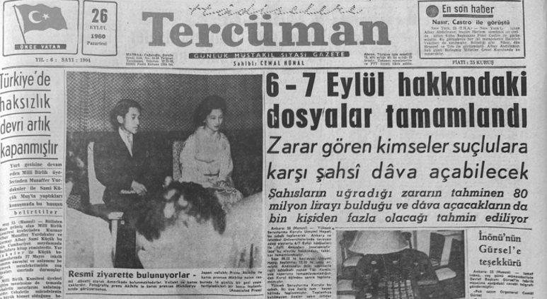 27 Mayıs 1960 Askerî Darbesi’nin ardından Yassıada Mahkemeleri başlamış; tutuklu olan Demokrat Parti hükûmetinde bulunun vekiller çeşitli konularda yargılanmaktaydı. 6-7 Eylül Olayları da bu konulardan biriydi. 26 Eylül 1960’ta yaşananları gelin, Tercüman tanıklığıyla inceleyelim.