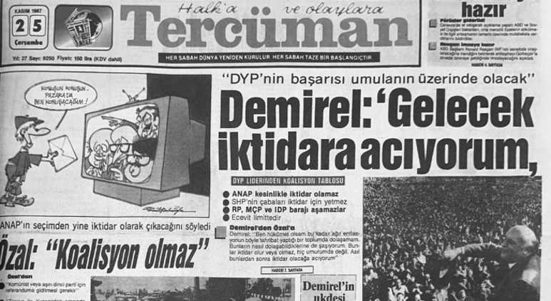 1987 Türkiye genel seçimlerine sayılı günler kalmıştı. 25 Kasım günü siyasi liderler arasındaki gerilim kamuoyunda hissediliyor, mitinglerde propagandalar yapılıyordu. Gelin 25 Kasım 1987 gününe Tercüman’ın tanıklığıyla birlikte bakalım.