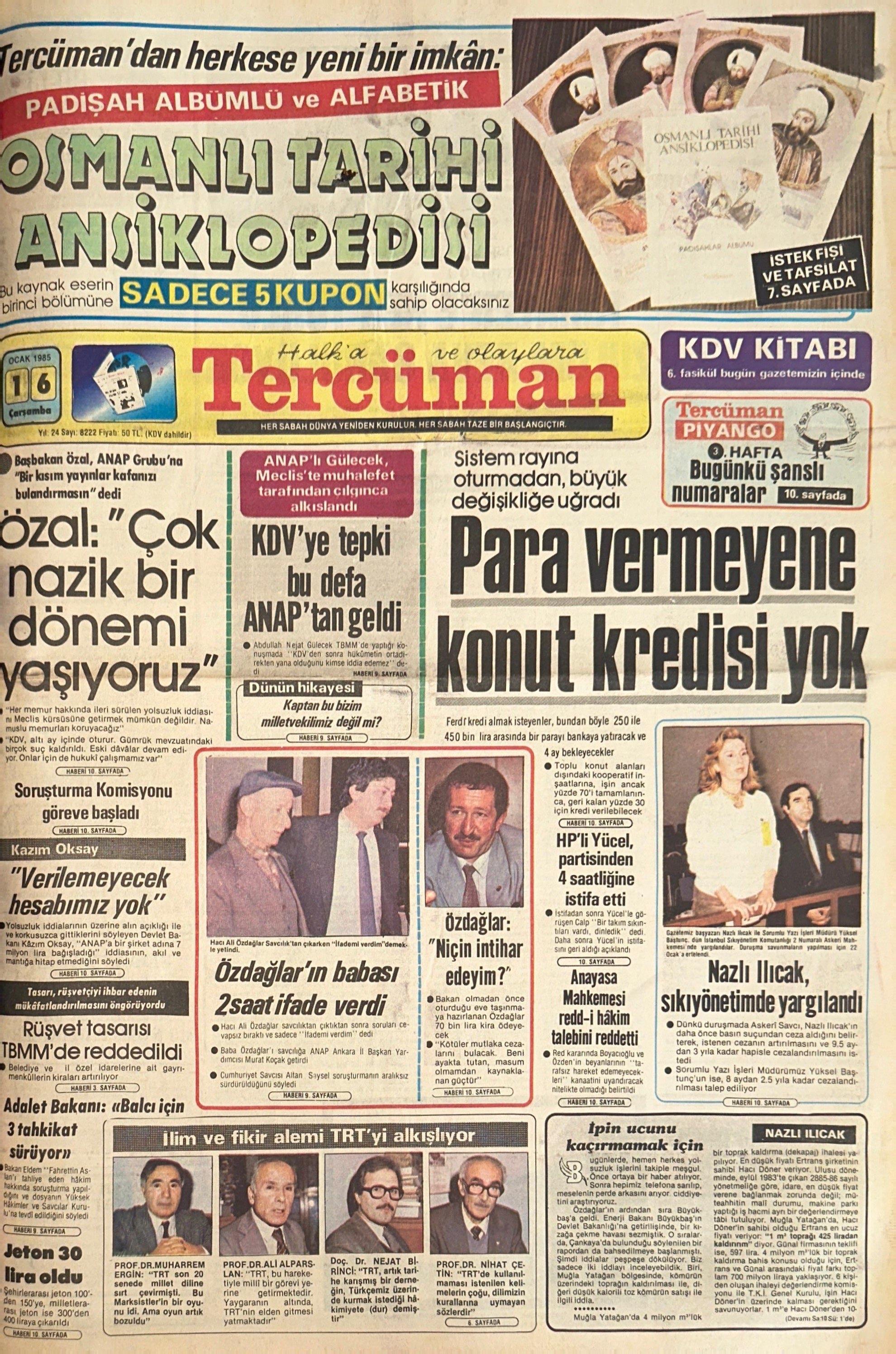 16 Ocak 1985’te Tercüman da manşetine Başbakan Turgut Özal’ın cümlesini taşımıştı:” Özal: ‘Çok nazik bir dönemi yaşıyoruz’”. Peki bu dönemi bu kadar nazik ve hassaslaştıran şeyler Başbakan’ın gözünden ne anlam ifade ediyordu? Habere yakından bakalım:
