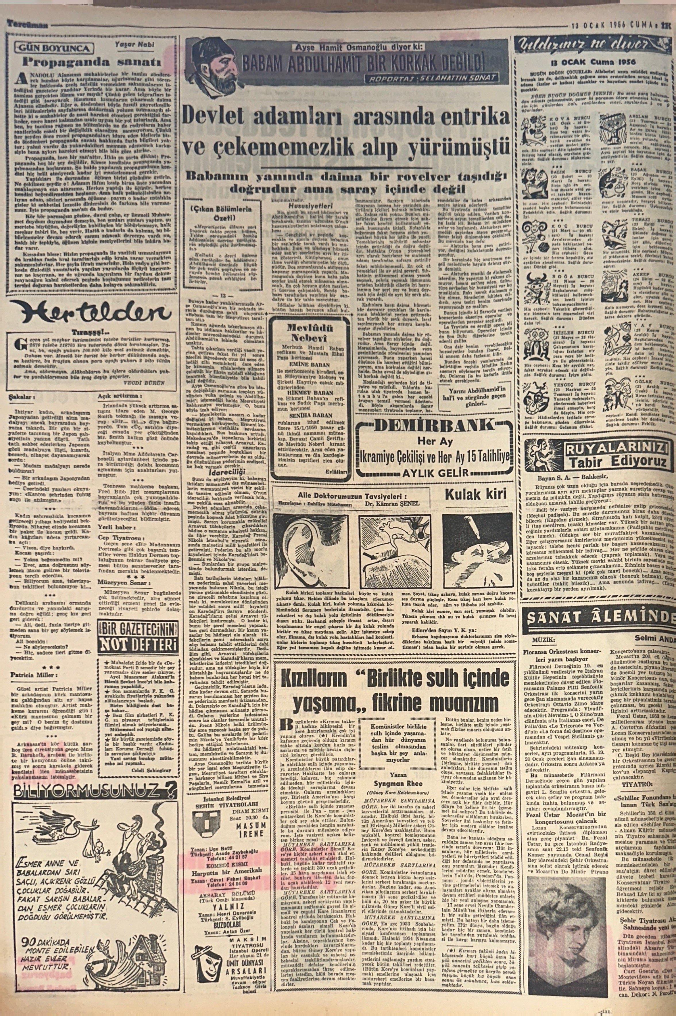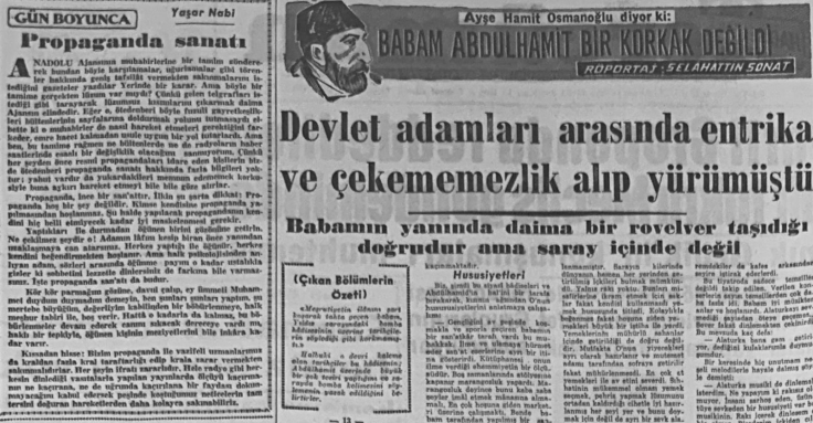 Yaşar Nabi Nayır; 13 Ocak 1956’da Tercüman’daki köşe yazısında radyo ve gazetelerde propagandanın usulünce yapılmadığını, bu vasıtanın aslında ince bir sanat olduğunu ve kamuoyunu yanlış bir algıya sürüklememek için daha dikkatli bir şekilde yapılması gerektiğini söylüyor.