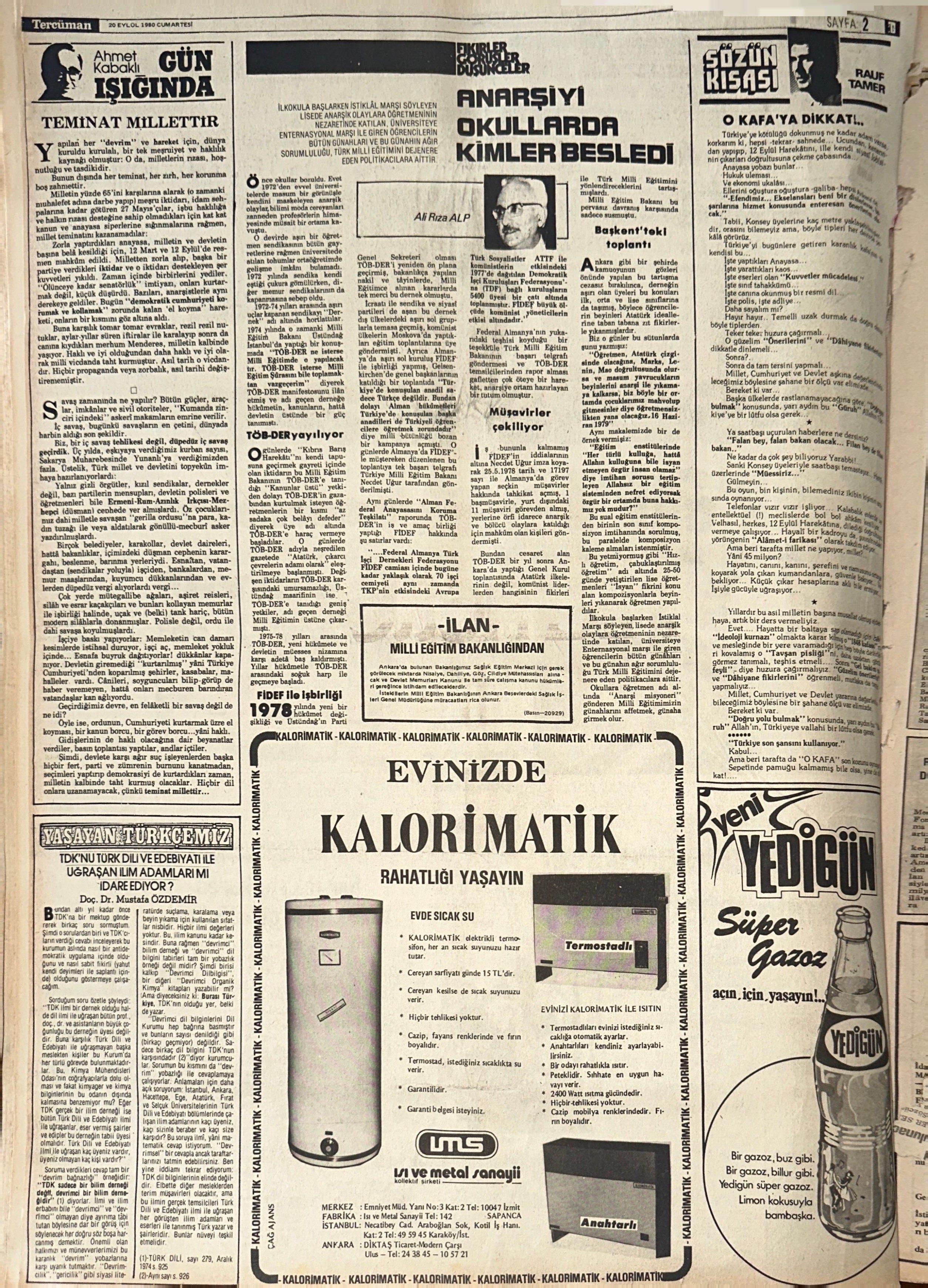 İşçiye baskı yapıyorlar: Memleketin can damarı kesimlerde istihsal duruyor, işçi aç, memleket yokluk içinde… Esnafa buyruk dağıtıyorlar! Dükkânlar kapanıyor. Devletin giremediği “kurtarılmış” yani Türkiye Cumhuriyeti’nden koparılmış şehirler, kasabalar, mahalleler vardı. Canileri, soyguncuları bilip görüp de haber veremeyen, hatta onları mecburen barındıran vatandaşlar kan ağlıyordu.