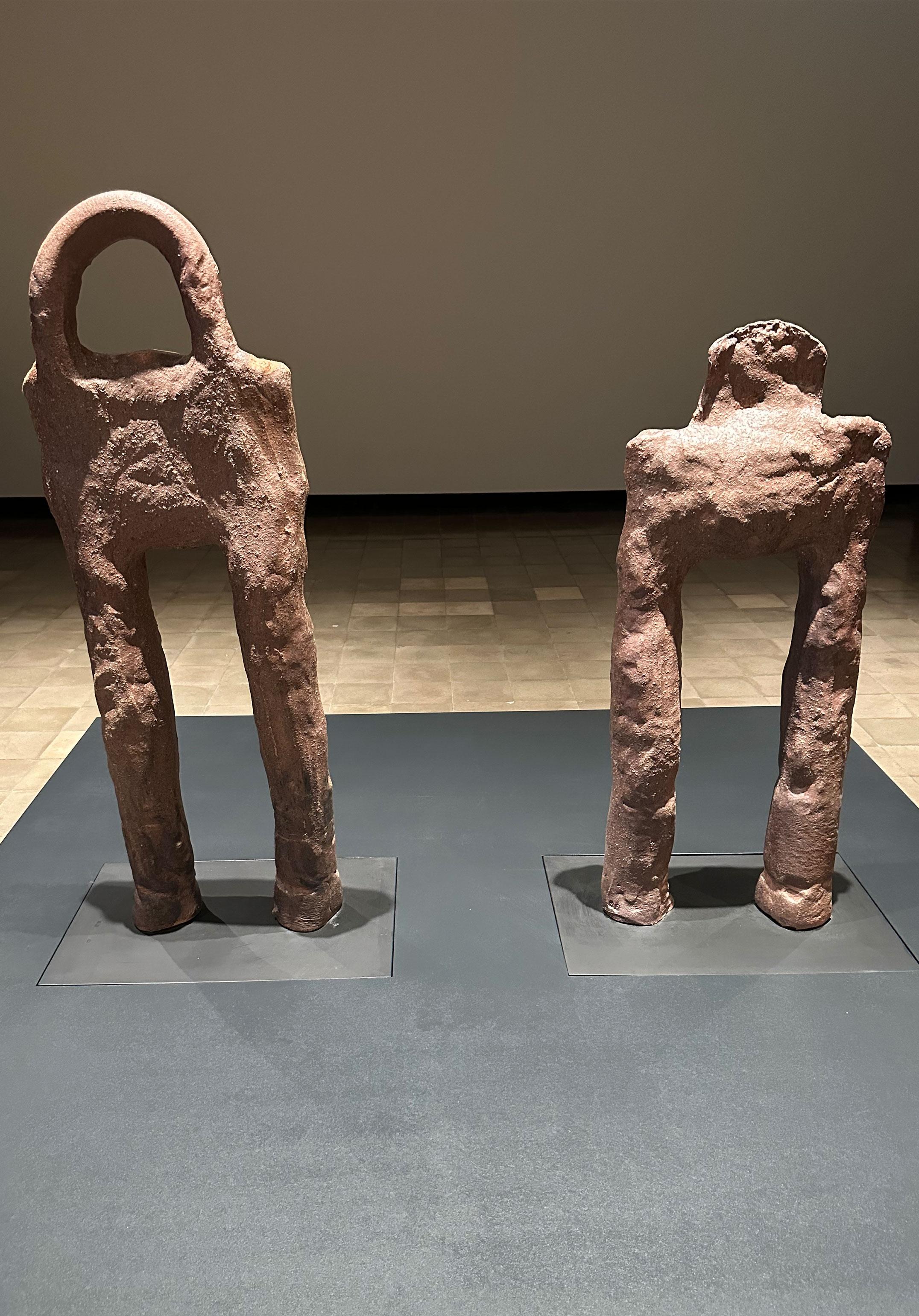 Bu tarihî binanın üçüncü katına çıktığımızda merdivenin hemen karşısında bir heykel serisi gözümüze çarpıyor. Bu heykeller çalışmalarını Paris’te sürdüren 1942 Şam doğumlu sanatçı Simone Fattal’a ait. Suriye’de doğup Lübnan’da büyüyen fakat Lübnan İç Savaşı’nda Fransa’ya göç etmek zorunda kalan sanatçı, “Savaşçılar” (“Warriors”/2011-2018) adını verdiği heykel serisiyle Arap destanı “Sīra shaʿbiyya” ve Sümer destanı Gılgamış’a gönderme yapıyor; hatta sadece geçmişin antik referanslarıyla da kalmıyor Lübnan İç Savaşı’ndaki deneyimlere de ayrıca cevap sunuyor. Mitoloji ve geçmiş savaş anlatıları Simone Fattal’ın kilden yapmış olduğu heykel serisinde birleşiyor, bugünün ve yarının mücadelelerini de anıtlaşıyor.