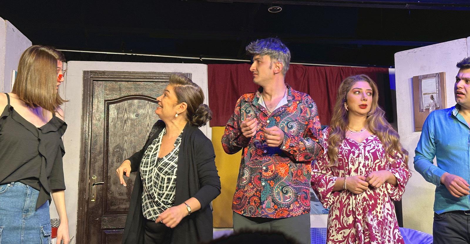 Oyuncu kadrosu, oyunun temposunu ayakta tutan enerjik bir bütünlük sunuyor. Emekli polis Bilal’i oldukça babacan esprilerle Efe Boz canlandırıyor. Ailenin hayırsız ama şeytan tüyüyle herkese kendini sevdiren yeğen Tarık’a Enes Yılmaz can veriyor. Mine ve ikiz kardeşi Giulia’yı İrem Odunkesen, iki karakterin ayrı ayrı mizah yükünü büyük bir başarıyla omuzlarında taşıyor. Ayla’nın kızı Filiz’i ise Özlem Erata hayat veriyor. Ev sahibi Ayla’yı Nida Keçecioğlu, Ayla’nın eski kocasının ruhunu çağırmak için eve gelen hırsız Cenk’i ise oyunun hem yazarı hem de yönetmeni olan Kadir Odunkesen oynuyor. Her oyuncu bence yıldız ama İrem Odunkesen’i izlemek çok eğlenceliydi. Yanlış telaffuz edilen kelimeler, tersten anlaşılan özdeyişler, cümleler, tarifler…