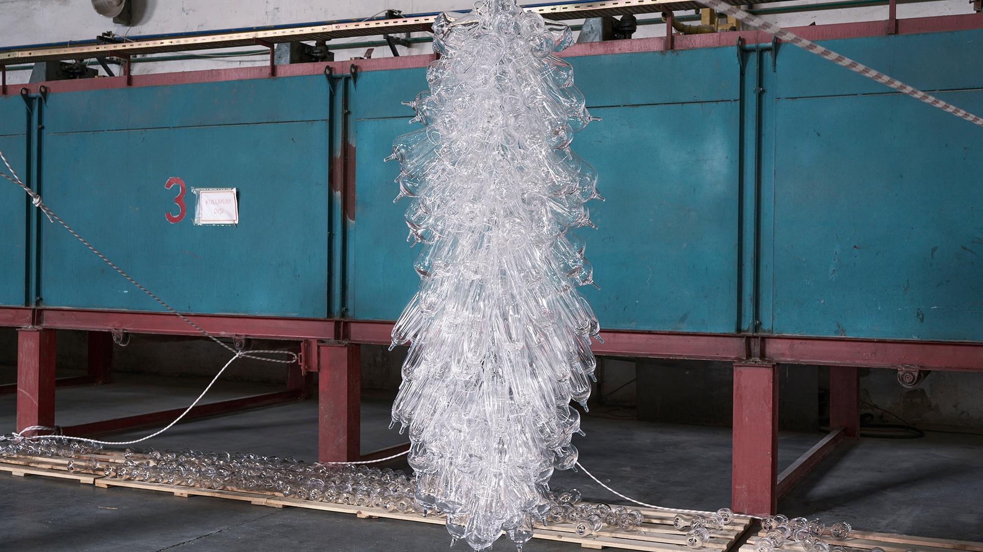 Sanatçının camla kurduğu ilişki büyüleyici. Camın o kırılgan, akışkan ve şeffaf yapısını; taşın ve mermerin sert, dirençli doğasıyla çarpıştırıyor. Bu zıtlık, insanın doğayla kurduğu o gerilimli ama vazgeçilmez ilişkiyi simgeliyor. Sergide ayrıca Jungnelius’un Türkiye coğrafyasından, özellikle “obsidyen” (volkan camı) kaynaklarından ilham alarak ürettiği işler de var. Bu durum, sergiyi İskandinav estetiği ile Anadolu coğrafyasının jeolojik hafızasının buluştuğu bir "yer-yüzü" şiirine dönüştürüyor. Zira kurulan iskelede Bitlis, Van ve Kars’tan bulunmuş obsidyenler, Carrara mermerleri, Mısır imparatorluk porfiri, plastik şişeler, çam özleri, naylon çoraplar, aynalar, camlar, tarihî birçok öğe, hasır otuyla örülmüş ipler birbiriyle camın ortaklaştırdığı şeffaflıkta birleşiyor; porteye oturmuş bir ahenk gibi dinlenilmeyi bekliyor. “Toprak, Ateş, Su ve Havayla Yazılmış Bir Dize”, bu yüzden göze hitap eden nesneler bütünü olmaktan öteye gidip; malzemeye, emeğe ve dünyanın kendisine saygı duruşunda bulunan dokunsal bir anlatıya dönüşüyor.