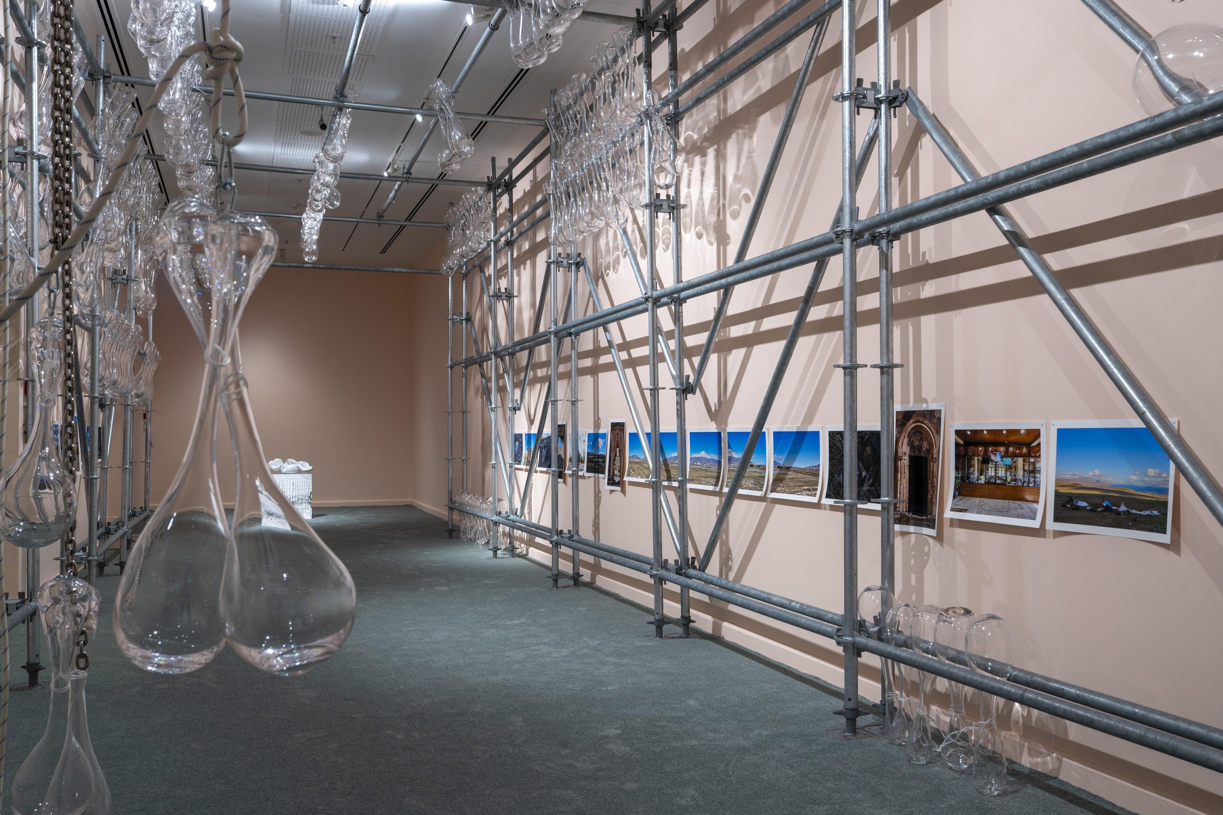 Duyguların dünyasından çıkıp, maddenin en saf hâline geçiş yapıyoruz şimdi. Pera Müzesi’nin diğer süreli sergisi, İsveçli sanatçı Åsa Jungnelius’un Türkiye’deki ilk kişisel sergisi: “Toprak, Ateş, Su ve Havayla Yazılmış Bir Dize” (A Verse, Written with Earth, Fire, Water and Air). Küratörlüğünü Elif Kamışlı’nın yaptığı bu sergi, âdeta bir doğa ayini gibi. Jungnelius, çalışmalarında malzemeyi (camı, taşı, metali) sadece bir araç olarak kullanmıyor; onlarla konuşuyor. Sergi mekânına girdiğinizde sizi karşılayan atmosfer, modern bir galeriden çok, mistik bir mağarayı veya henüz keşfedilmemiş bir gezegeni andırıyor.
