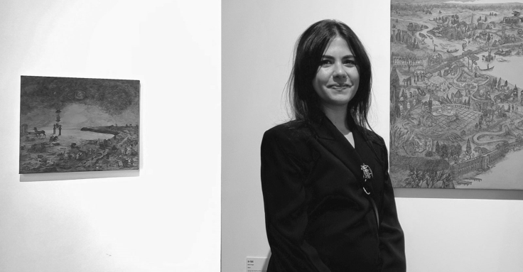 Gravürü çağrıştırması, kullandığım malzemelerin sürprizli sonucundan ötürü. Resim sanatında görmeye pek alışık olmadığımız mimari malzemeler kullanıyorum. Bunun en büyük sebebi çok ince detayları çizmeme olanak sağlaması ve malzemenin benim önüme geçmemesi, engel oluşturmaması.